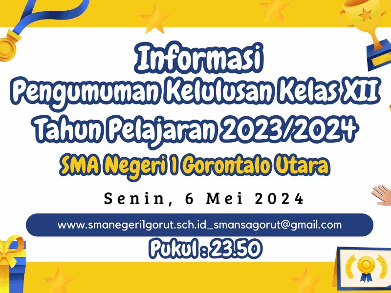 INFORMASI KELULUSAN KELAS XII SMA NEGERI 1 GORONTALO UTARA TAHUN PELAJARAN 2023 / 2024