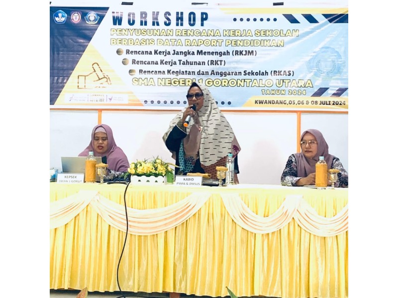 SMA Negeri 1 Gorontalo Utara, 19 Juli 2024. Pembukaan Kegiatan Workshop Peningkatan Kompetensi Guru dalam Penyusunan Perangkat dan Asesmen Pembelajaran Kurikulum Merdeka Semester Ganjil 2024 / 2025. Untuk Meningkatkan Literasi dan Numerasi sebagai Transformasi Pembelajaran. Yang dilaksanakan di Hotel Fox...