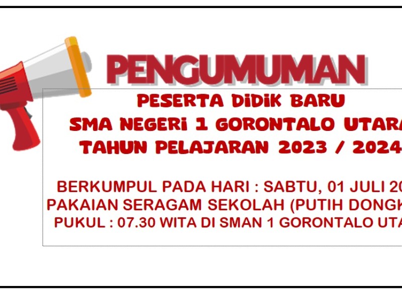 PENGUMUMAN PESERTA DIDIK BARU SMA NEGERI 1 GORONTALO UTARA TAHUN PELAJARAN 2023 / 2024