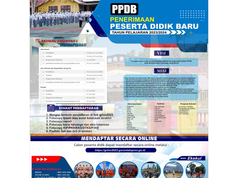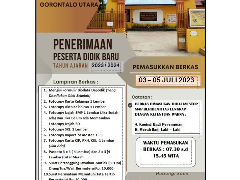 PENDAFTARAN PPDB SMA NEGERI 1 GORONTALO UTARA TAHUN PELAJARAN 2023 / 2024