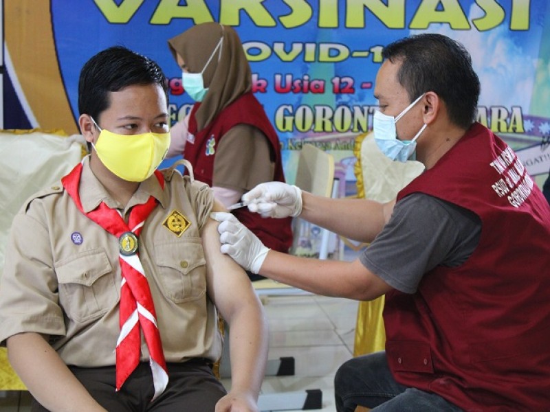 Dalam Pelaksanaan Vaksinasi Anak Usia 12 - 17 Tahun di Lingkungan SMA Negeri 1 Gorontalo Utara, Diharapkan Partisipasi Dari Semua Siswa - siswi SMA Negeri 1 Gorontalo Utara, Sehingga Lancarnya Kegiatan Pembelajaran Tatap Muka (PTM) Di Tahun Pelajaran 2021 /...